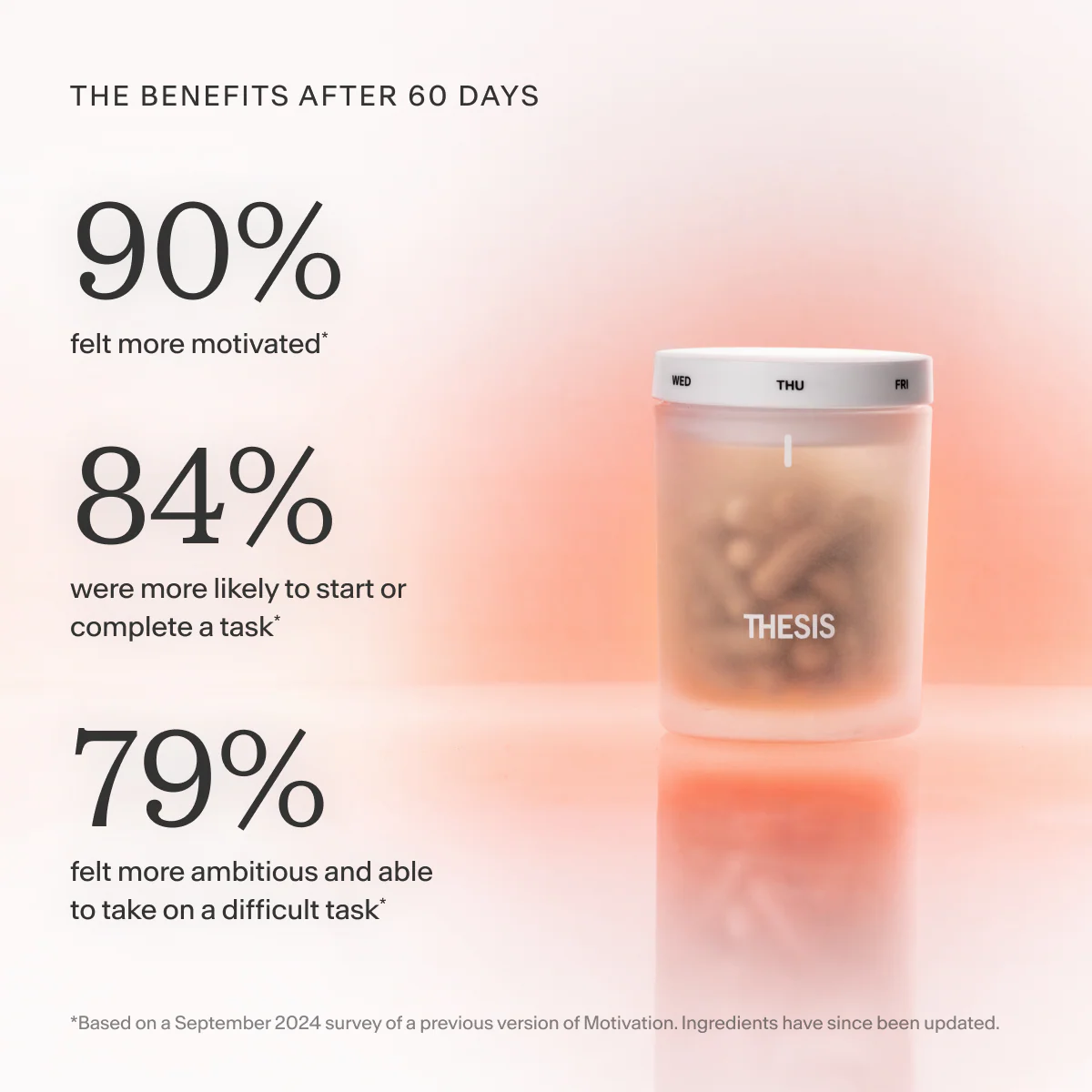 Thesis uses isolated, plant-derived compounds rather than blends or extractions. This allows us to control consistency and experiment to determine the most effective dose of each ingredient to get the best results possible.