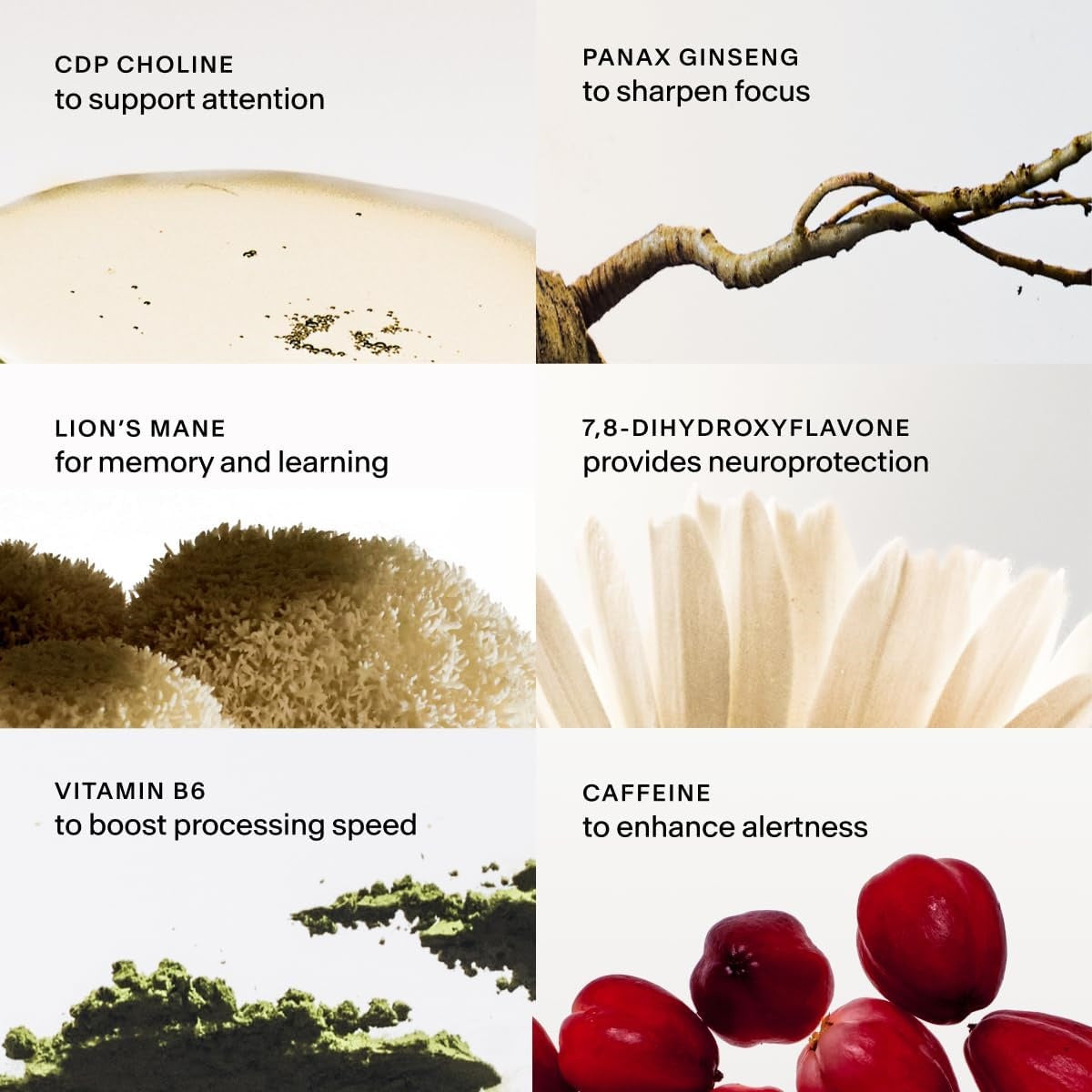 - TARGETED INGREDIENT BLEND: This nootropic blend features CDP Choline, 100mg of Caffeine, Lion’s Mane, Panax Ginseng, 7,8-DHF, and active B6 to support acetylcholine production for learning and memory.